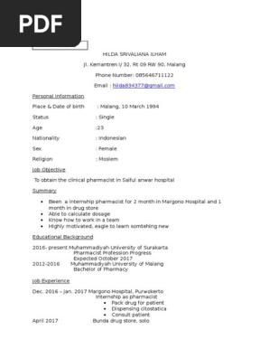 Contoh Resume Untuk Farmasi Dalam Melamar Kerja English Pdf